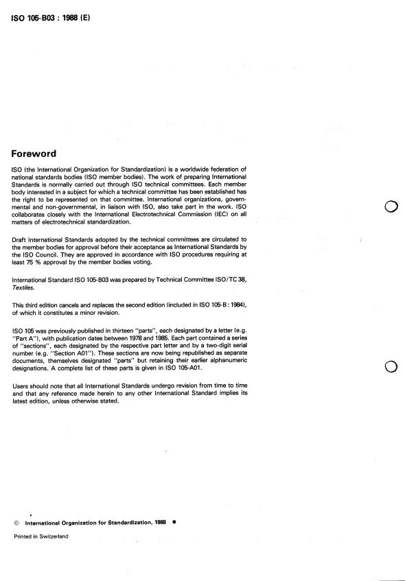 International Standard IS0 105-BO3 was prepared by Technical Committee ISO/TC 38,