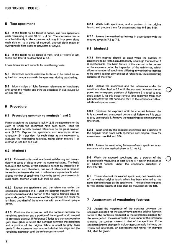 ISO 105-B03:1988 - Textiles — Tests for colour fastness — Part B03: Colour fastness to weathering: Outdoor exposure Released:4/28/1988