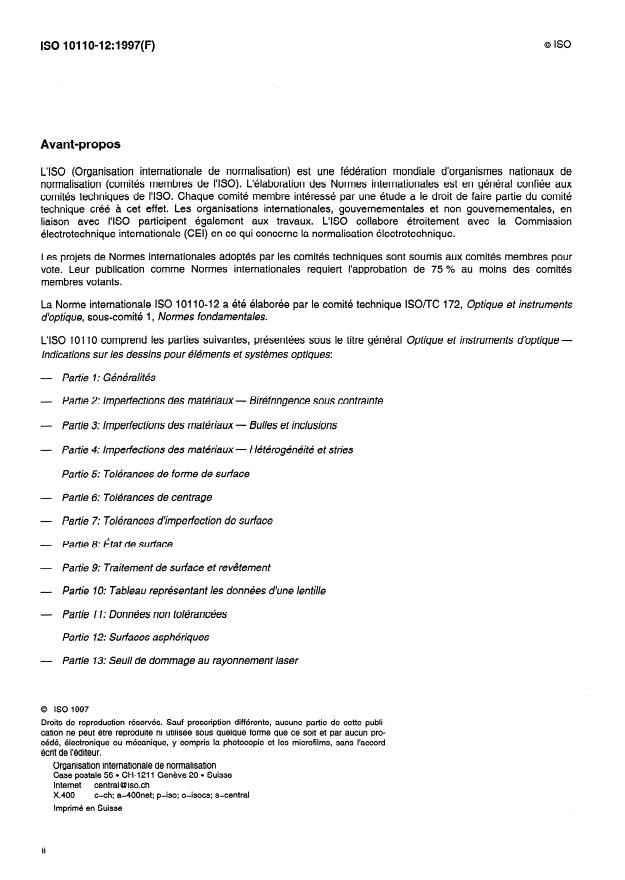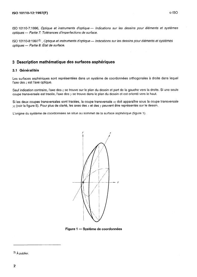 ISO 10110-12:1997 is a standard published by the International Organization for Standardization (ISO). Its full title is "Optics and optical instruments — Preparation of drawings for optical elements and systems — Part 12: Aspheric surfaces". This standard covers: Optics and optical instruments — Preparation of drawings for optical elements and systems — Part 12: Aspheric surfaces