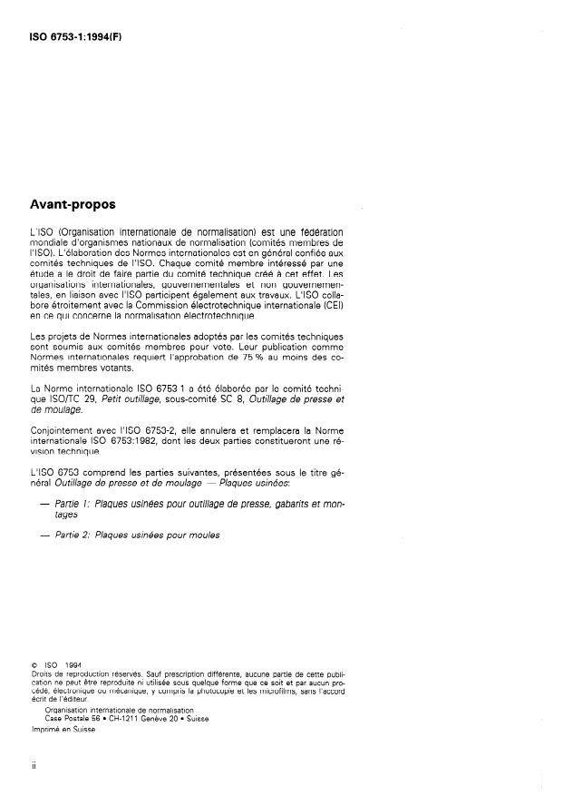 ISO 6753-1:1994 - Tools for pressing and moulding -- Machined plates