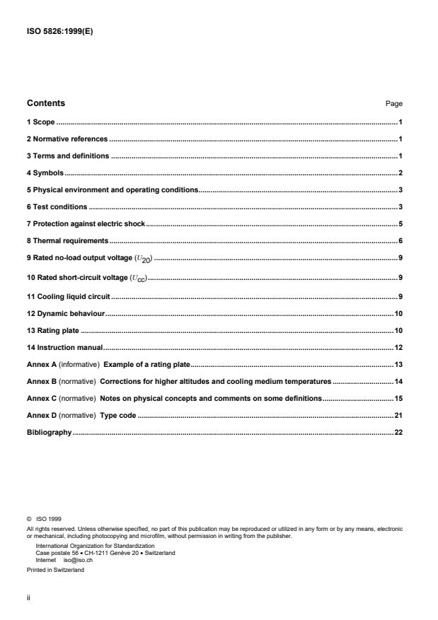 ISO 5826:1999 is a standard published by the International Organization for Standardization (ISO). Its full title is "Resistance welding equipment — Transformers — General specifications applicable to all transformers". This standard covers: Resistance welding equipment — Transformers — General specifications applicable to all transformers