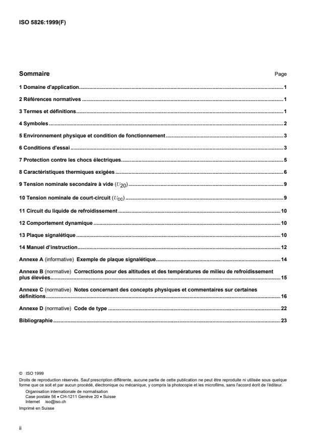 ISO 5826:1999 - Matériel de soudage par résistance -- Transformateurs -- Spécifications générales applicables a tous les transformateurs
