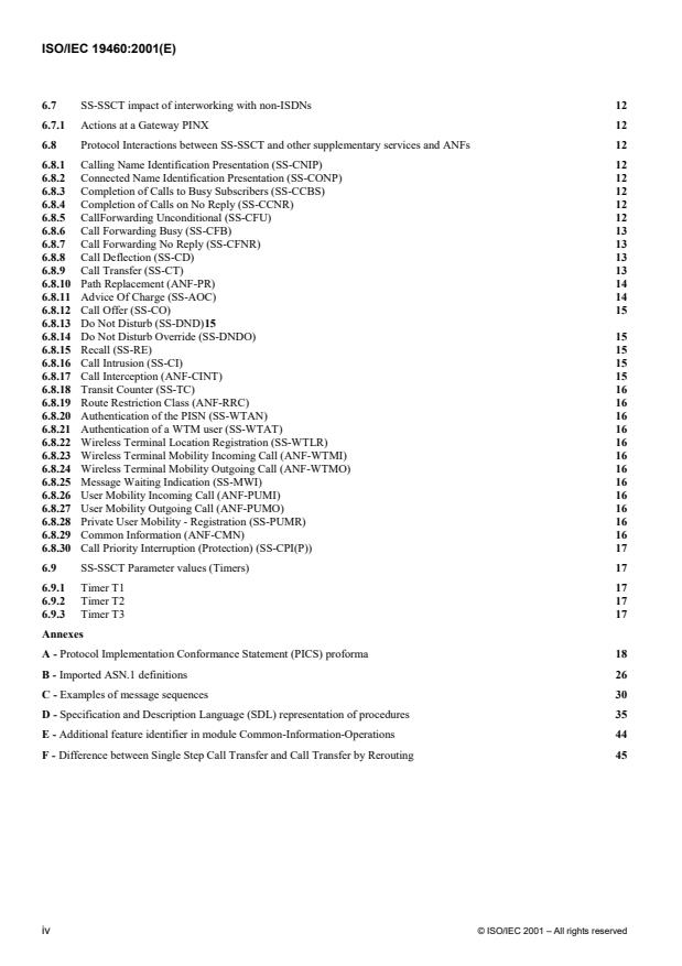 ISO/IEC 19460:2001 - Information technology -- Telecommunications and information exchange between systems -- Private Integrated Services Network -- Inter-exchange signalling protocol -- Single Step Call Transfer Supplementary Service