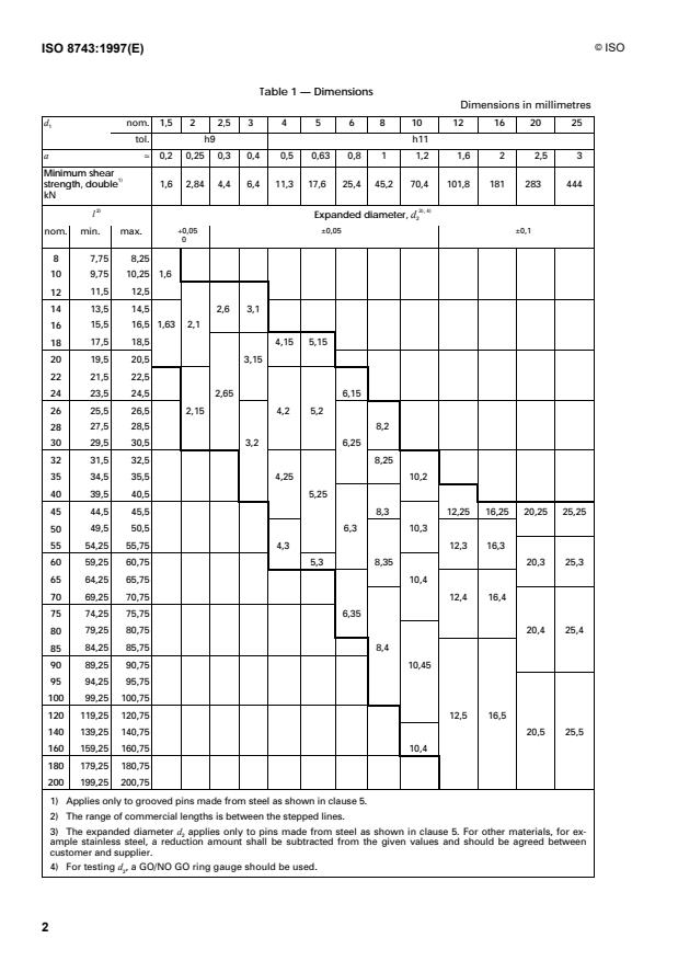 ISO 8743:1997 - Grooved pins -- Half-length centre grooved
