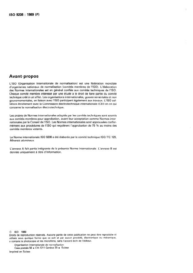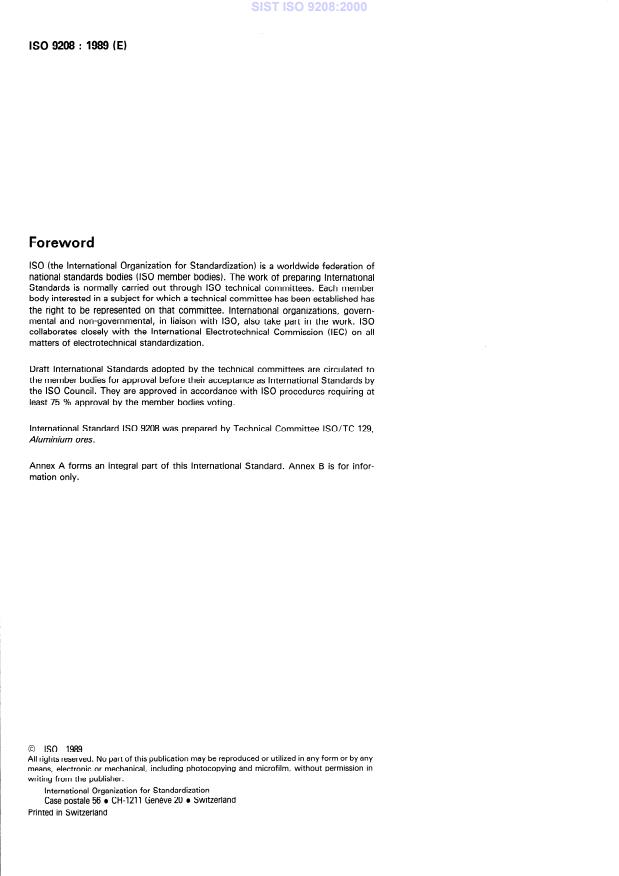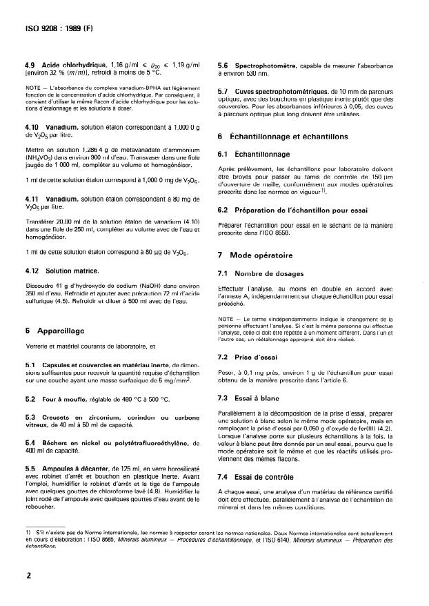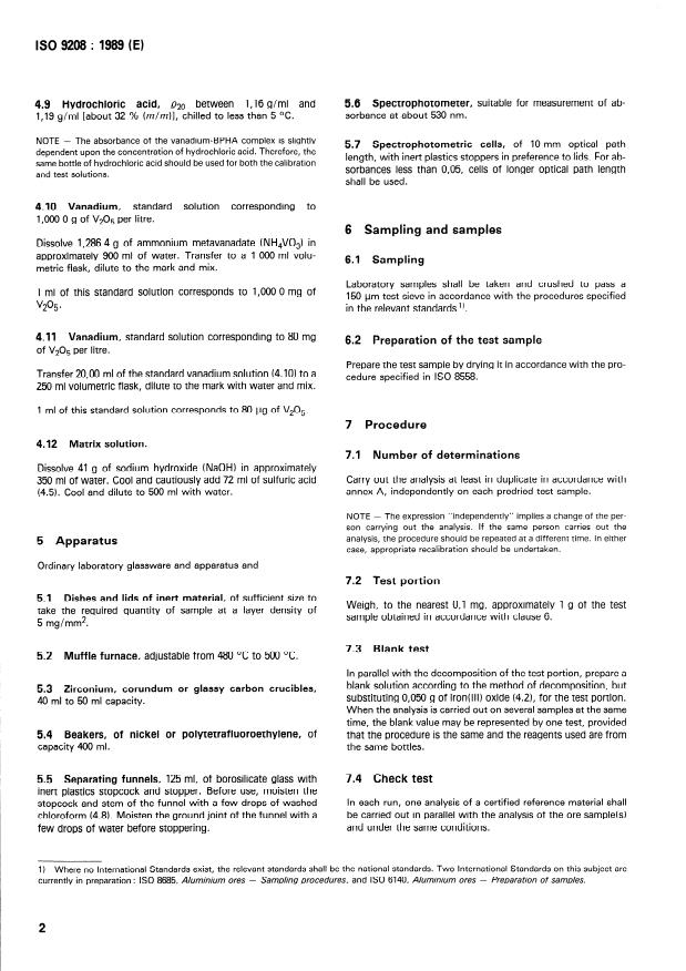 ISO 9208:1989 - Aluminium ores - Determination of vanadium content -- BPHA spectrophotometric method