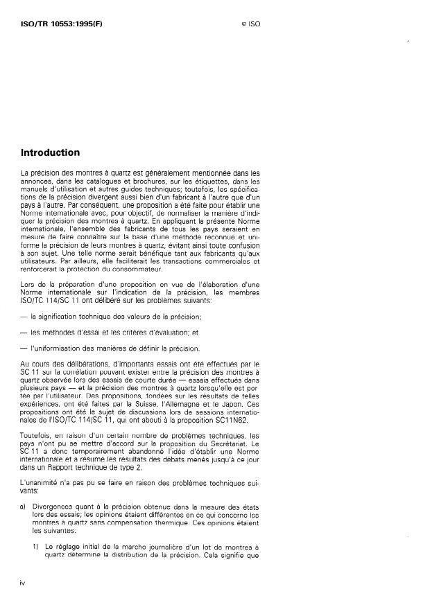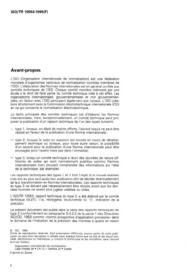 ISO/TR 10553:1995 - Indication de la précision des montres a quartz