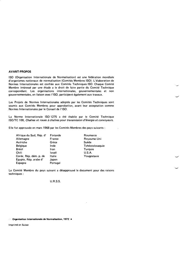 ISO 1275:1972 - Extended pitch precision roller chains and chain wheels for transmission and conveyors Released:7/1/1972