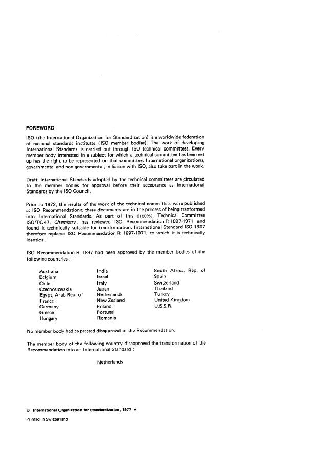lSO/TC 47, Chemistry, has reviewed IS0 Recommendation R 1897-1971 and