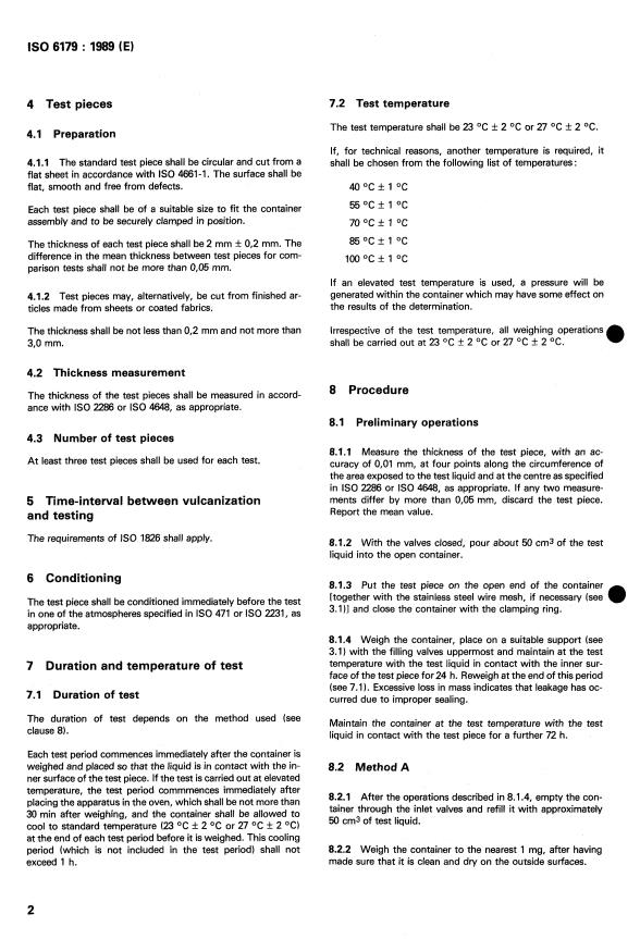 ISO 6179:1989 - Vulcanized rubber sheet, and fabrics coated with vulcanized rubber — Determination of transmission rate of volatile liquids (Gravimetric technique) Released:12/21/1989