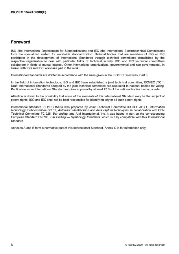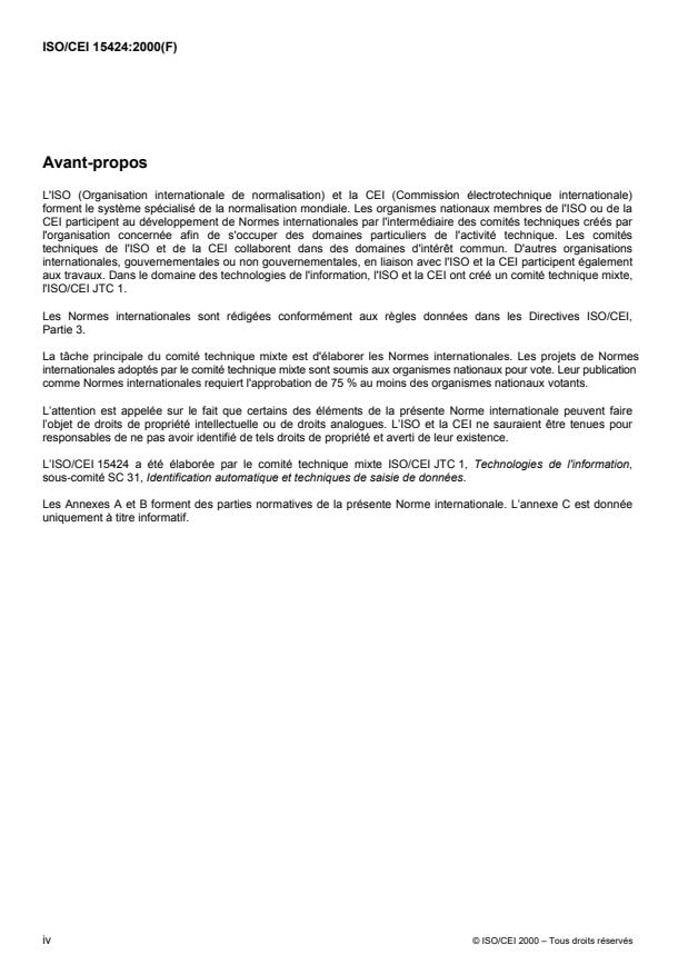 International Standard ISO/IEC 15424 was prepared by Joint Technical Committee ISO/IEC JTC 1, Information