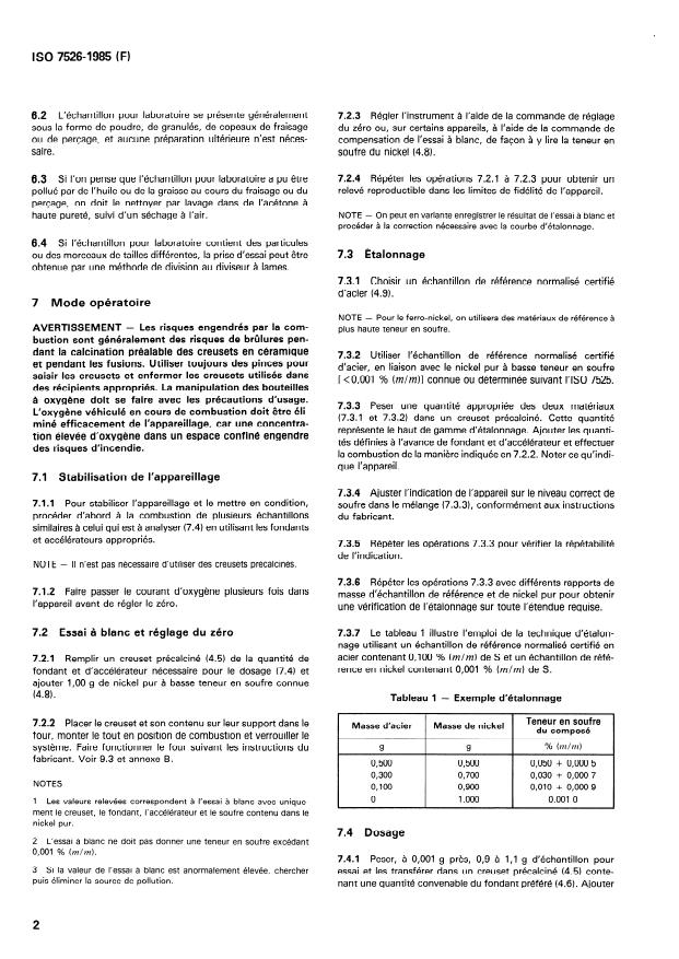 ISO 7526:1985 - Nickel, ferro-nickel et alliages de nickel -- Dosage du soufre -- Méthode par absorption dans l'infrarouge apres combustion dans un four a induction