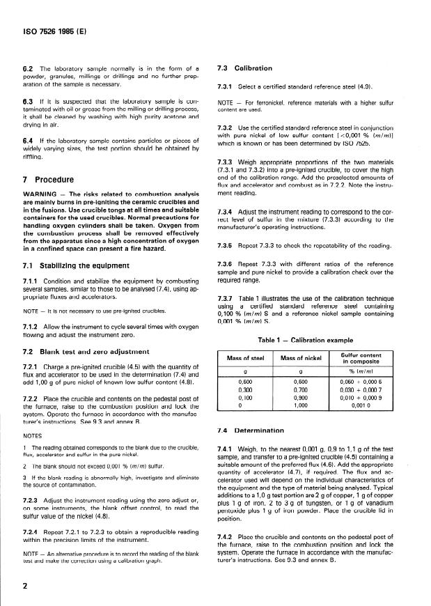 ISO 7526:1985 - Nickel, ferronickel and nickel alloys -- Determination of sulfur content -- Infra-red absorption method after induction furnace combustion