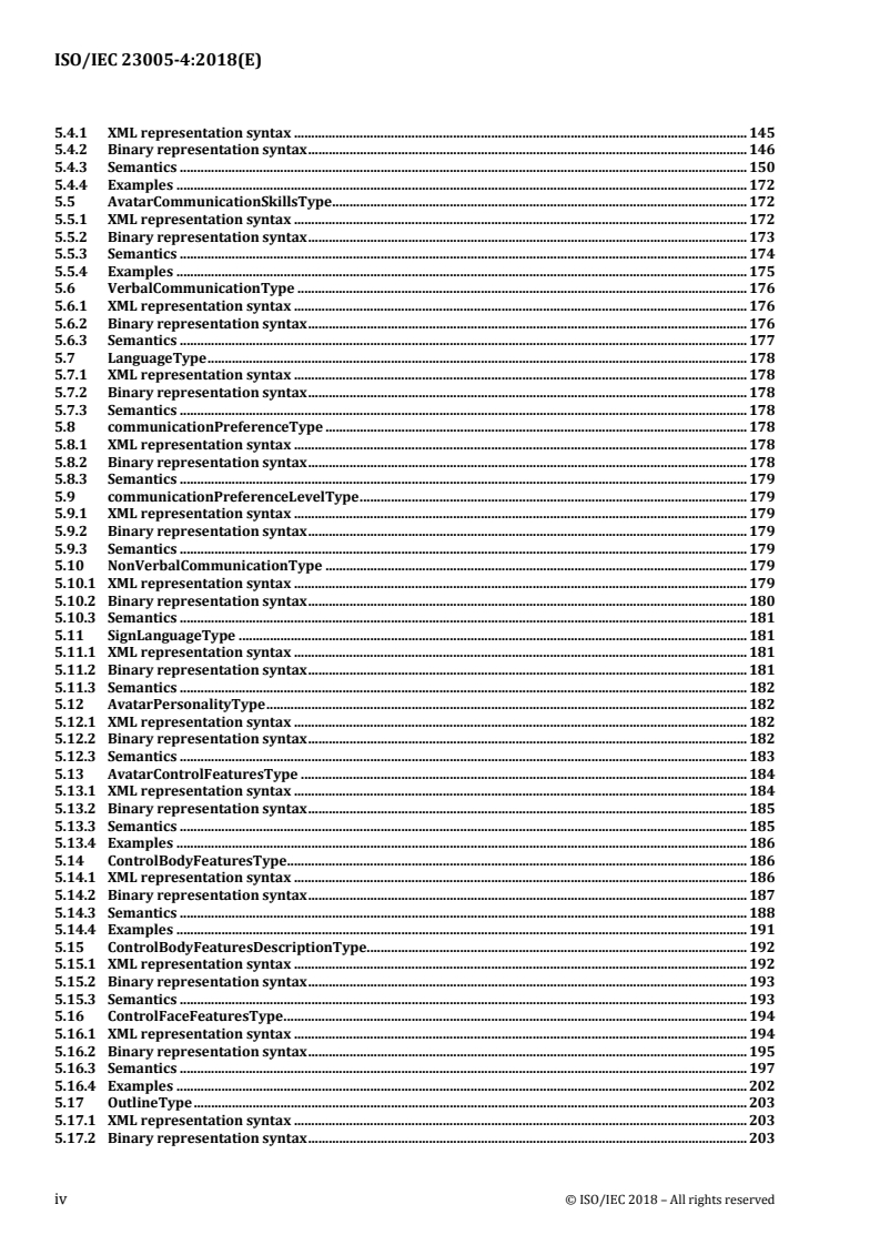 Keywords: ISO/IEC 23005-4:2018, virtual world object characteristics, VWOC, virtual world metadata, XML Schema, virtual objects, avatars, media context and control.