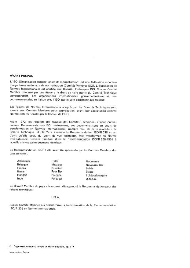 La R ecommandation lSO/R 238 avait été approuvée par les Com ités Membres des