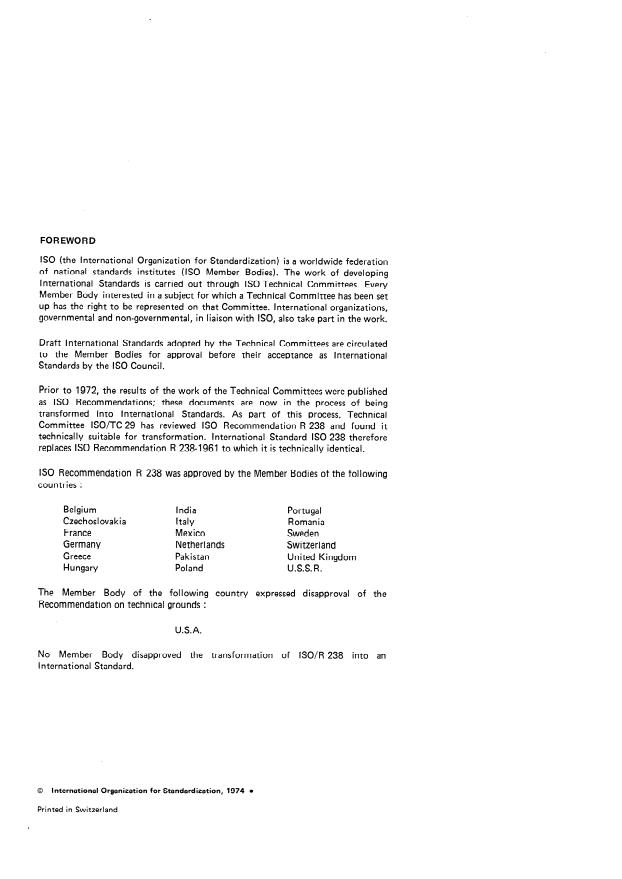 replaces IS0 Recommendation R 238-1961 to which it is technically identical.