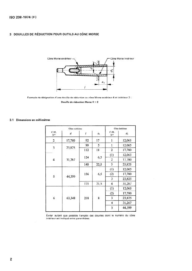 ISO 238:1974 - Douilles de réduction et allonges pour outils au cône Morse