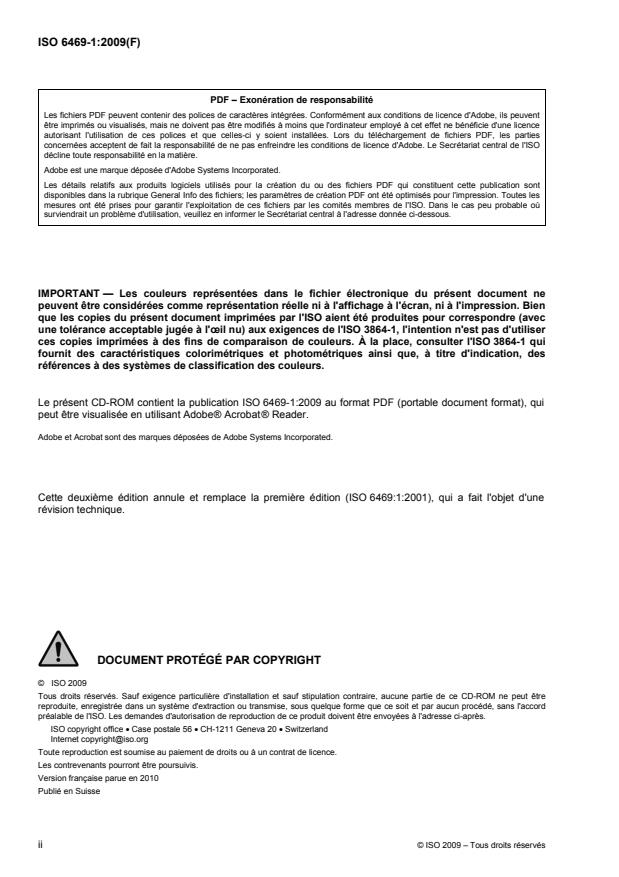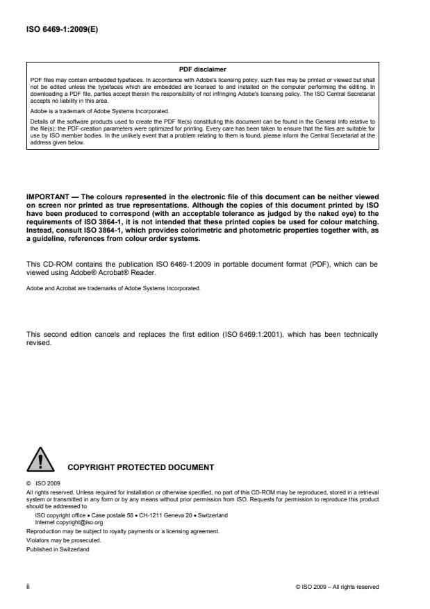 This CD-ROM contains the publication ISO 6469-1:2009 in portable document format (PDF), which can be
