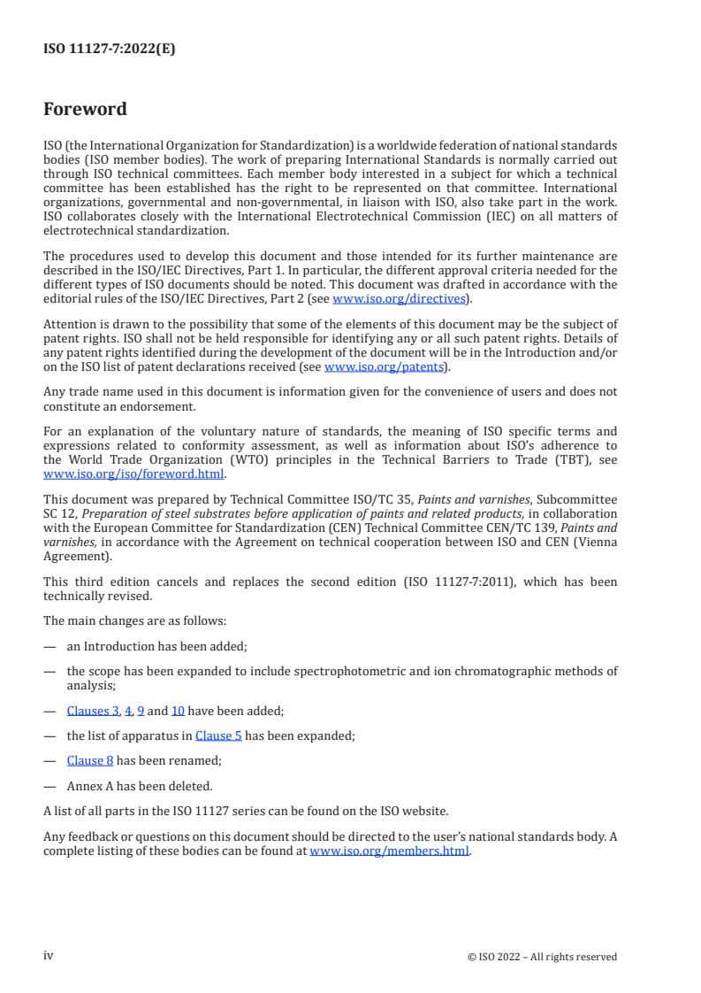 Keywords: ISO 11127-7:2022, water-soluble chlorides, non-metallic blast-cleaning abrasives, amperometric titration, spectrophotometry, ion chromatography, preparation of steel substrates.