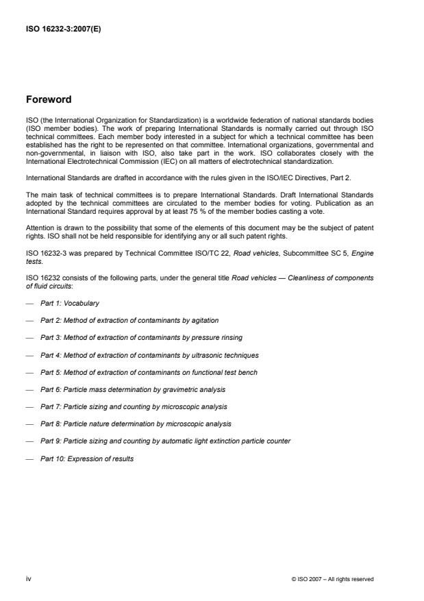 ISO 16232-3:2007 - Road vehicles -- Cleanliness of components of fluid circuits
