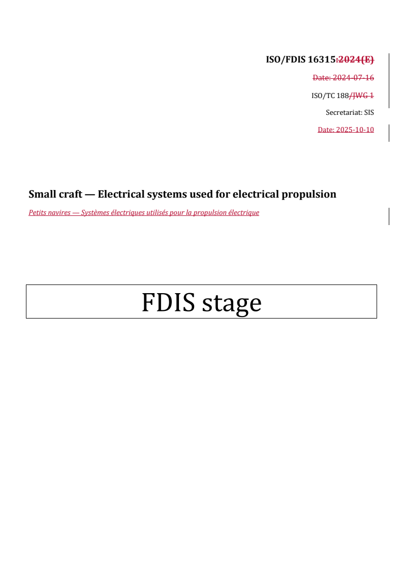 REDLINE ISO/FDIS 16315 - Small craft — Electrical systems used for electrical propulsion Released:10/16/2025