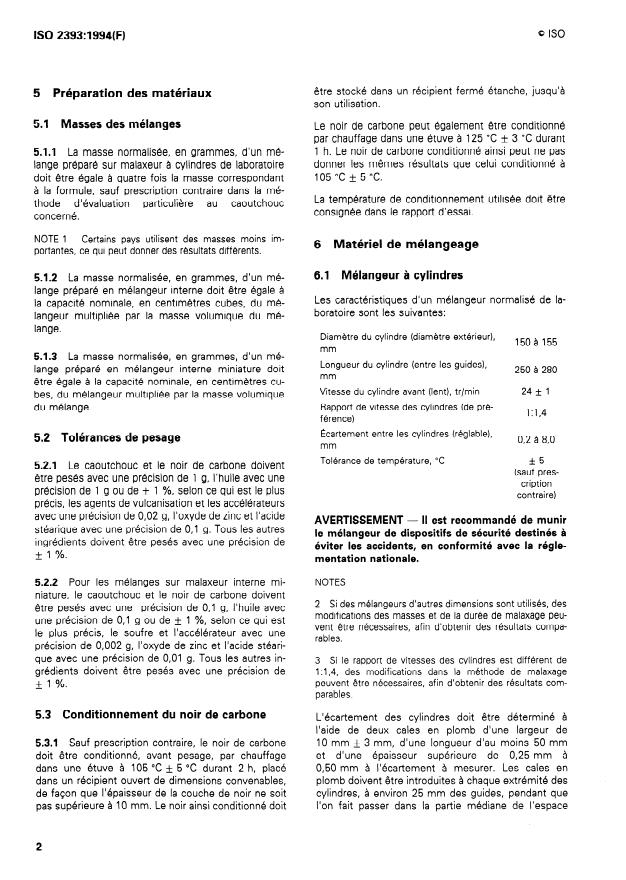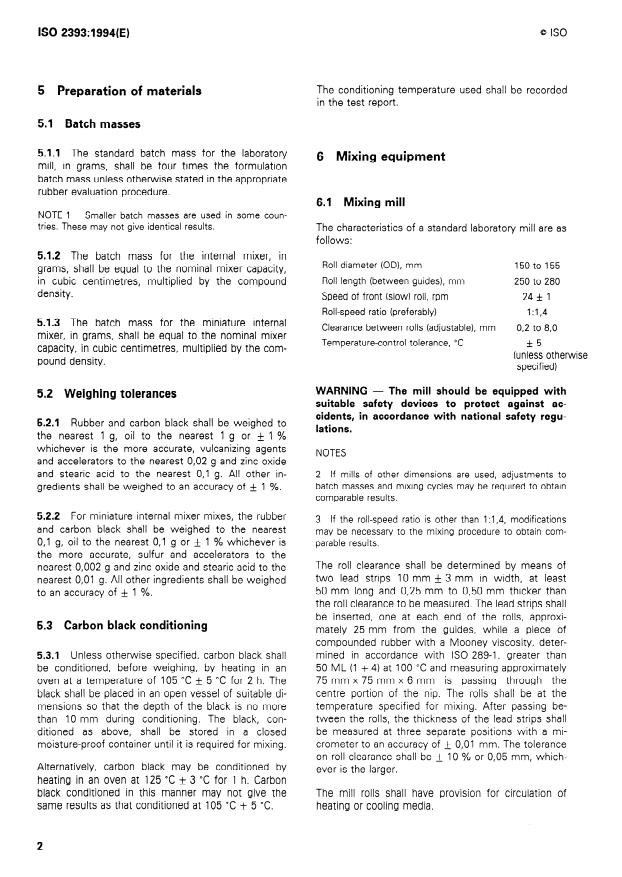 ISO 2393:1994 - Rubber test mixes -- Preparation, mixing and vulcanization -- Equipment and procedures