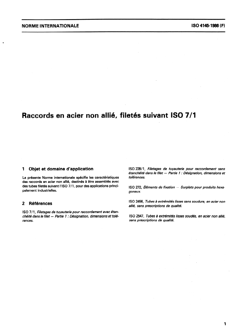 ISO 4145:1986 - Raccords en acier non allié, filetés suivant ISO 7-1/17/1986