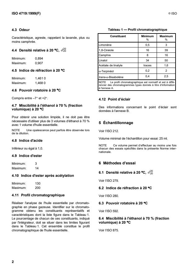 ISO 4719:1999 - Huile essentielle d'aspic (Lavandula latifolia (L.f.) Medikus), type Espagne
