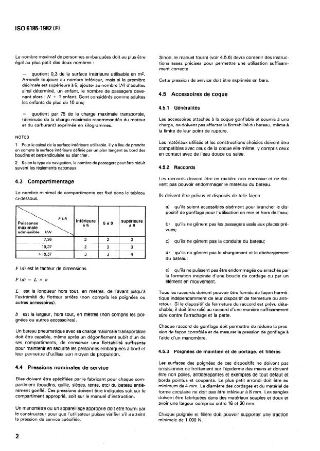 ISO 6185:1982 is a standard published by the International Organization for Standardization (ISO). Its full title is "Shipbuilding and marine structures — Inflatable boats — Boats made of reinforced elastomers or plastomers". This standard covers: Specifies the minimum safety characteristics required for the design, materials to use, manufacture and testing of inflatable boats. Is applicable to inflatable boats made of reinforced plastomers and elastomers capable of carrying at least one person weighing 75 kg without dimensional limitation. Is not applicable to inflatable life rafts.