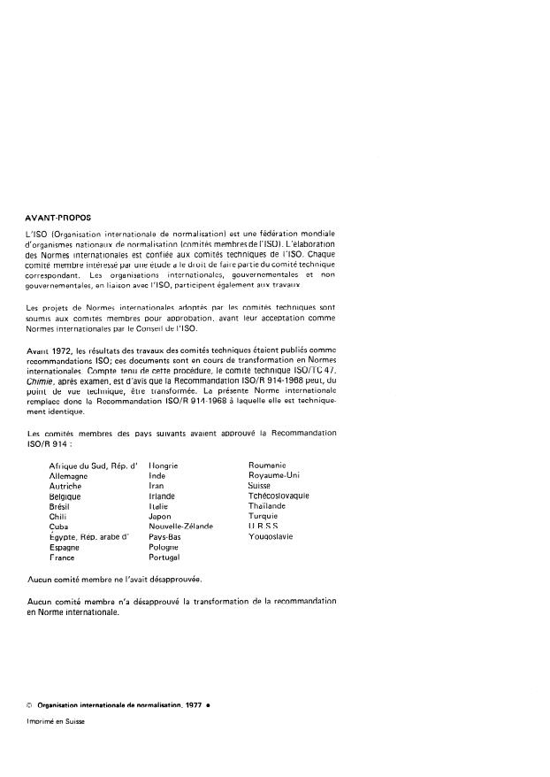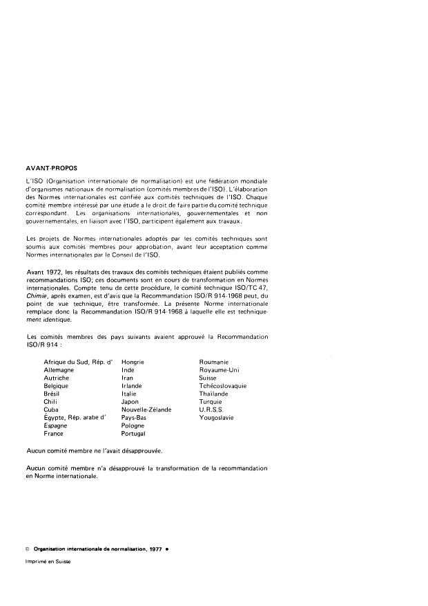 replaces IS0 Recommendation R 914-1968, to which it is technically identical.
