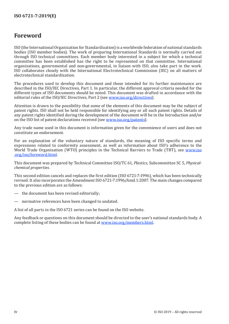 revised. It also incorporates the Amendment ISO 6721-7:1996/Amd.1:2007. The main changes compared