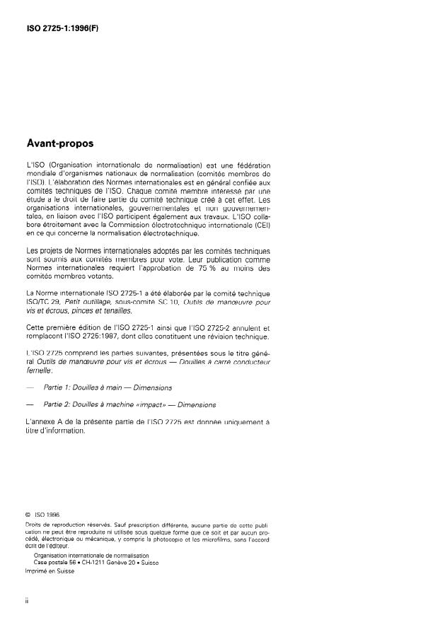 L’ISO 2725 comprend les parties suivantes, présentées sous le titre géné-
