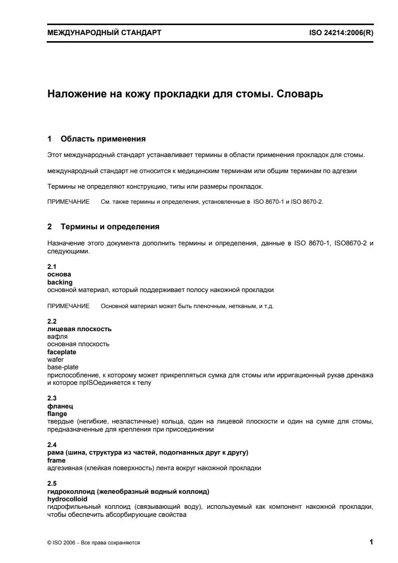 ISO 24214:2006 defines terms dealing with skin barriers for ostomy aids as defined below. ISO 24214:2006 does not cover medical terms or general adhesive terms. The terms do not individually or collectively define or recommend a product of a specific design, style or size.