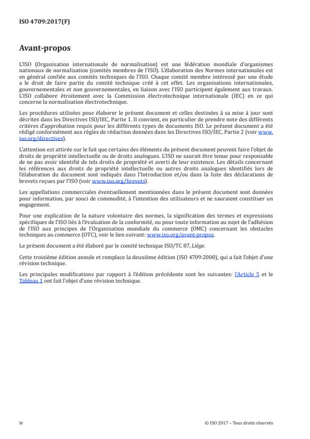 Cette troisième édition annule et remplace la deuxième édition (ISO 4709:2000), qui a fait l’objet d’une
