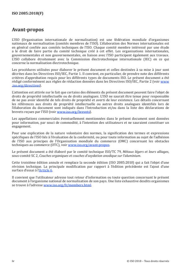 ISO 2085:2018 - Anodisation de l'aluminium et de ses alliages -- Contrôle de la continuité des couches anodiques minces -- Essai au sulfate de cuivre
