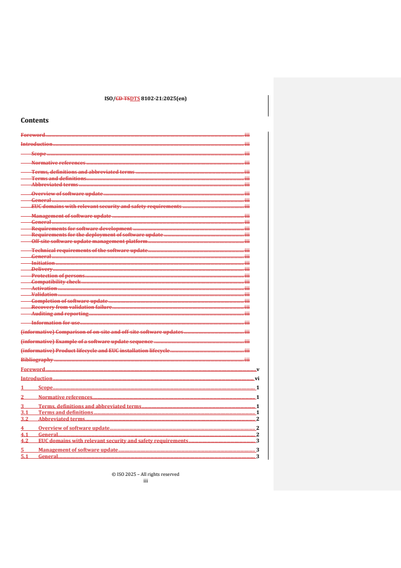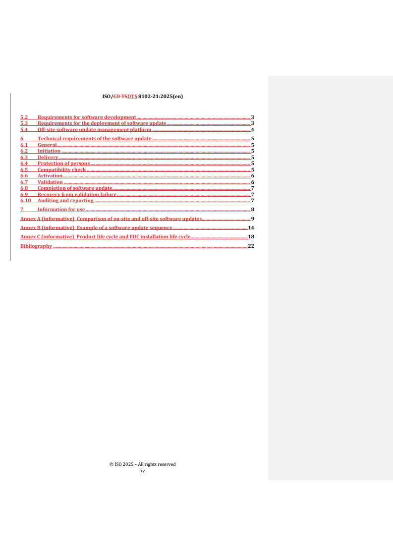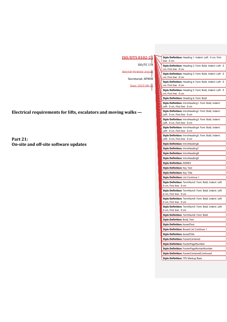 REDLINE ISO/DTS 8102-21 - Electrical requirements for lifts, escalators and moving walks — Part 21: On-site and off-site software updates Released:26. 08. 2025