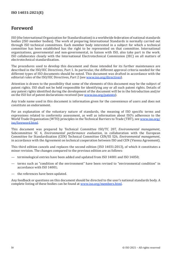 ISO 14031:2021 is a standard published by the International Organization for Standardization (ISO). Its full title is "Environmental management — Environmental performance evaluation — Guidelines". This standard covers: This document gives guidelines for the design and use of environmental performance evaluation (EPE) within an organization. It is applicable to all organizations, regardless of type, size, location and complexity. This document does not establish environmental performance levels. It is not intended for use for the establishment of any other environmental management system (EMS) conformity requirements. The guidance in this document can be used to support an organization's own approach to EPE including its commitments to compliance with legal and other requirements, the prevention of pollution and continual improvement, among others. NOTE This document is a generic standard and does not include guidance on specific methods for valuing or weighting different kinds of impacts in different kinds of sectors, disciplines, etc. Depending on the nature of the organization's activities, there is often a need to also go to other sources for additional information and guidance on sector-specific topics, different subject matters or different scientific disciplines.