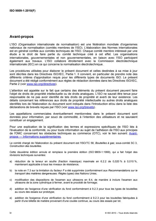 L'ISO 9809-1:2010 prescrit les exigences minimales concernant le matériau, la conception, la construction et la mise en œuvre, les modes de fabrication, les examens et les essais au moment de la fabrication des bouteilles à gaz rechargeables, en acier trempé et revenu sans soudure, d'une capacité en eau comprise entre 0,5 l et 150 l inclus, pour gaz comprimés, liquéfiés ou dissous. L'ISO 9809-1:2010 s'applique aux bouteilles ayant une résistance maximale réelle à la traction Rma inférieure à 1 100 MPa. Si on le désire, les bouteilles de capacité en eau inférieure à 0,5 l et les bouteilles d'une capacité en eau comprise entre 150 l et 500 l peuvent être fabriquées et certifiées conformément à l'ISO 9809-1:2010.
