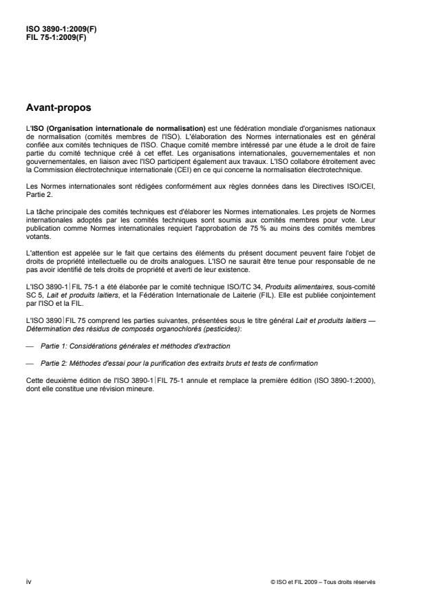 ISO 3890-1:2009 - Lait et produits laitiers -- Détermination des résidus de composés organochlorés (pesticides)