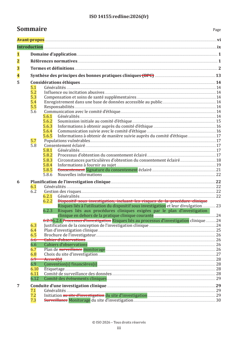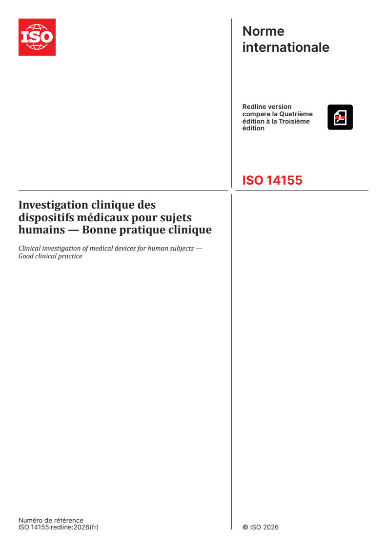 REDLINE ISO 14155:2026 - Investigation clinique des dispositifs médicaux pour sujets humains — Bonne pratique clinique