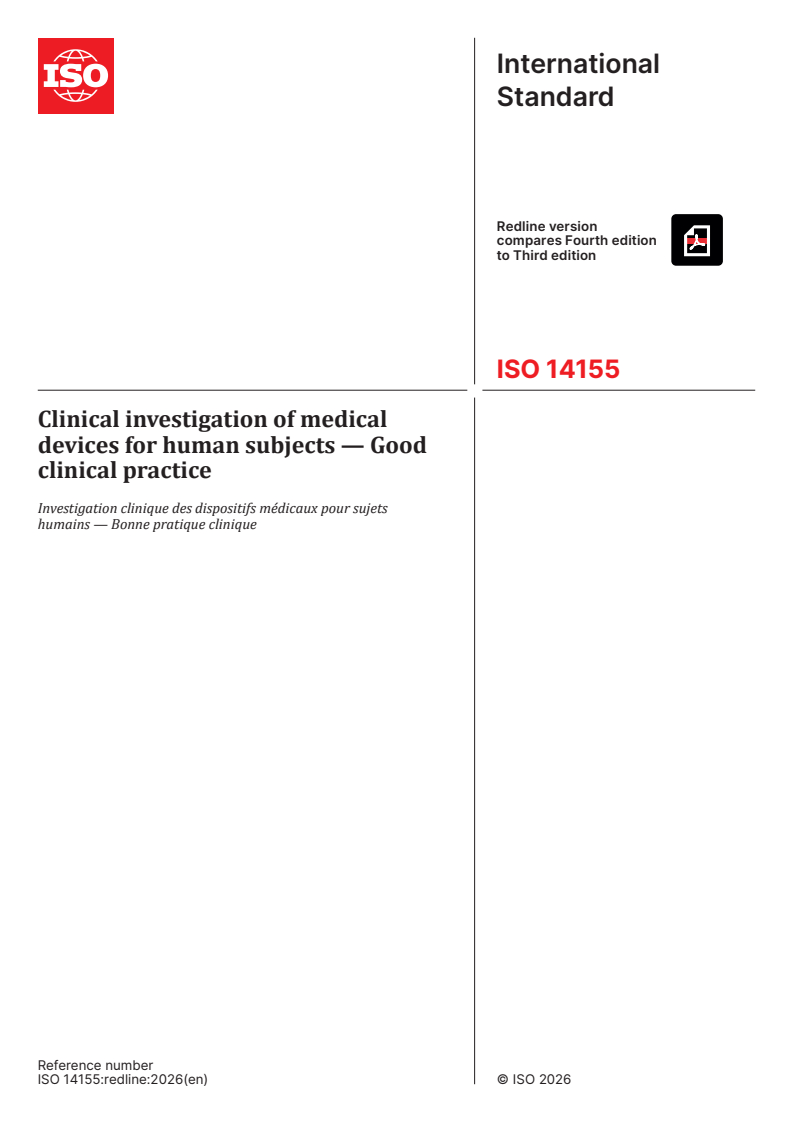REDLINE ISO 14155:2026 - Clinical investigation of medical devices for human subjects — Good clinical practice