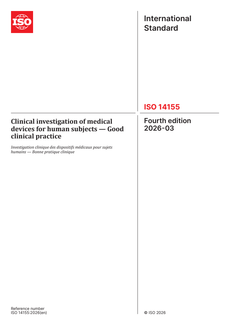 ISO 14155:2026 - Clinical investigation of medical devices for human subjects — Good clinical practice
