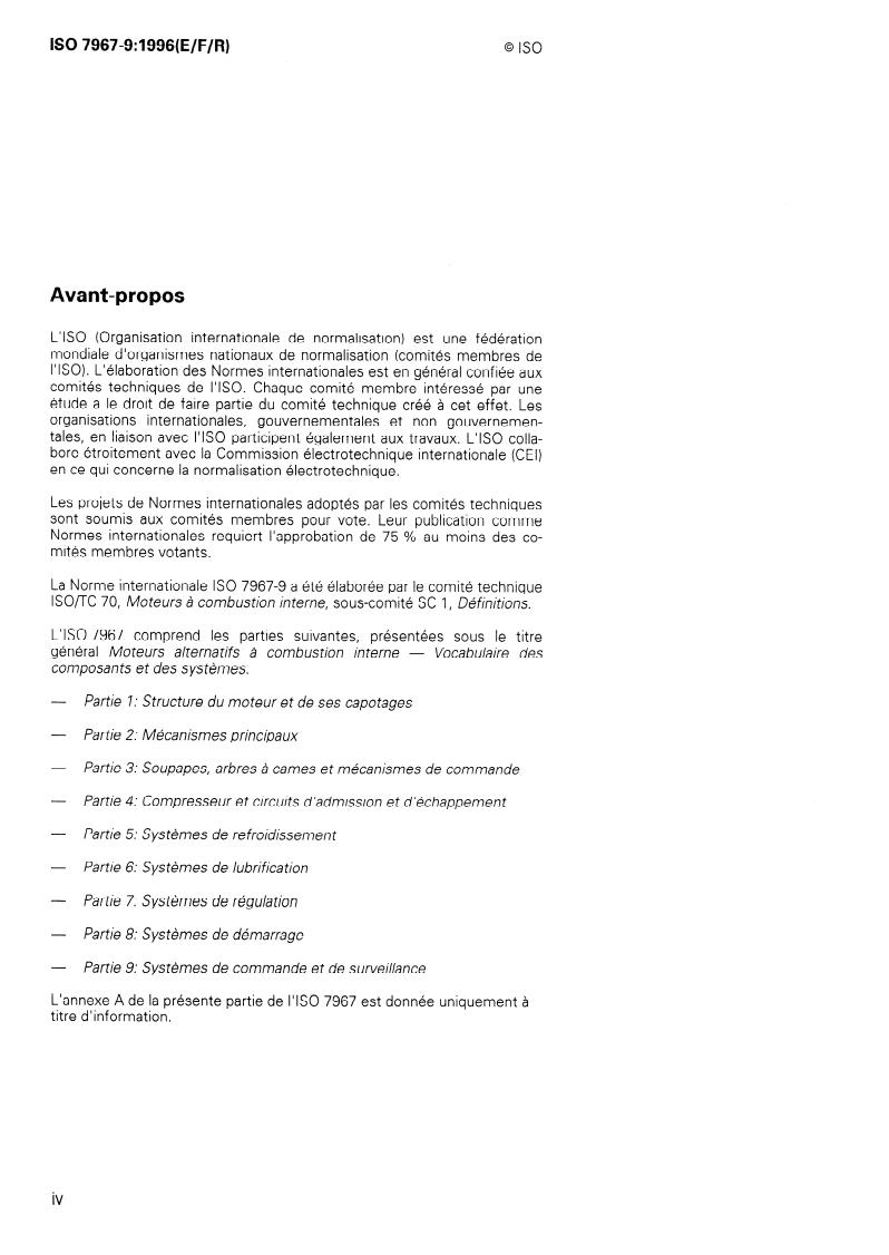 ISO 7967-9:1996 is a standard published by the International Organization for Standardization (ISO). Its full title is "Reciprocating internal combustion engines — Vocabulary of components and systems — Part 9: Control and monitoring systems". This standard covers: Defines terms relating to the control and monitoring systems of reciprocating internal combustion engines.