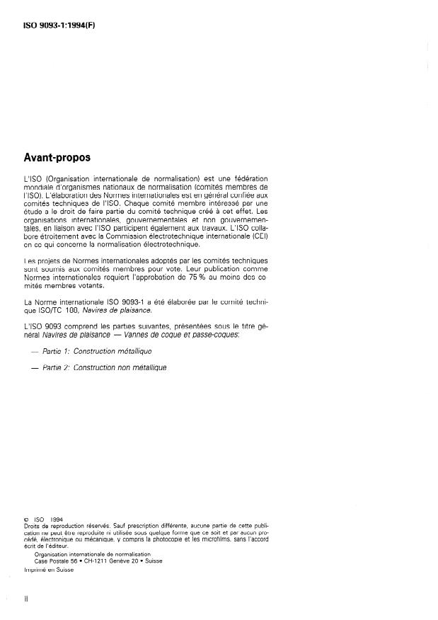 ISO 9093-1:1994 - Navires de plaisance -- Vannes de coque et passe-coques