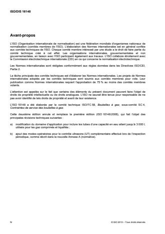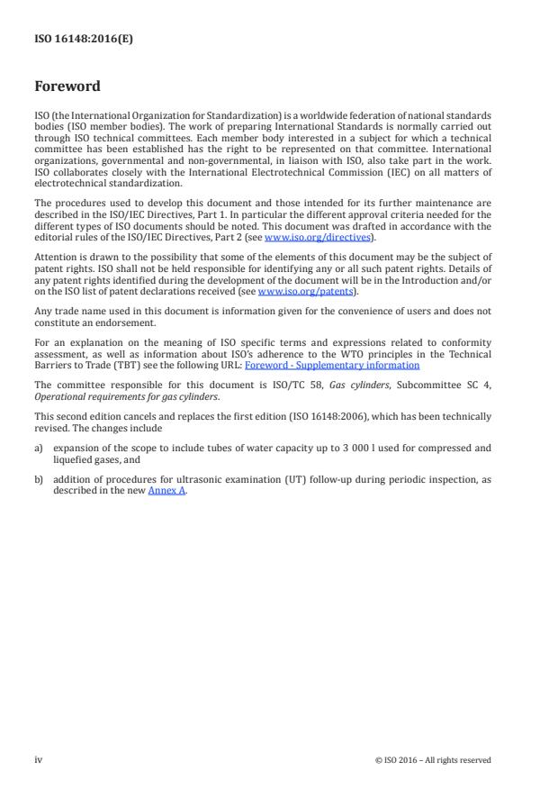 ISO 16148:2016 is a standard published by the International Organization for Standardization (ISO). Its full title is "Gas cylinders - Refillable seamless steel gas cylinders and tubes - Acoustic emission examination (AT) and follow-up ultrasonic examination (UT) for periodic inspection and testing". This standard covers: ISO 16148:2016 gives procedures for the use of acoustic emission examination (AT) and ultrasonic examination (UT) follow-up during the periodic inspection and testing of seamless steel cylinders and tubes with a water capacity of up to 3 000 l used for compressed and liquefied gases. This examination provides acoustic emission (AE) indications and locations that are evaluated by a secondary examination using UT for a possible flaw in the cylinder or tube. Methods other than UT for the secondary examination are not covered by this International Standard. ISO 16148:2016 does not cover composite cylinders. CAUTION ? Some of the tests specified in this International Standard involve the use of processes which could lead to a hazardous situation.