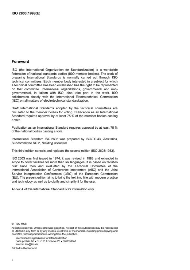 ISO 2603:1983 - Booths for simultaneous interpretation — General characteristics and equipment - Effective Date