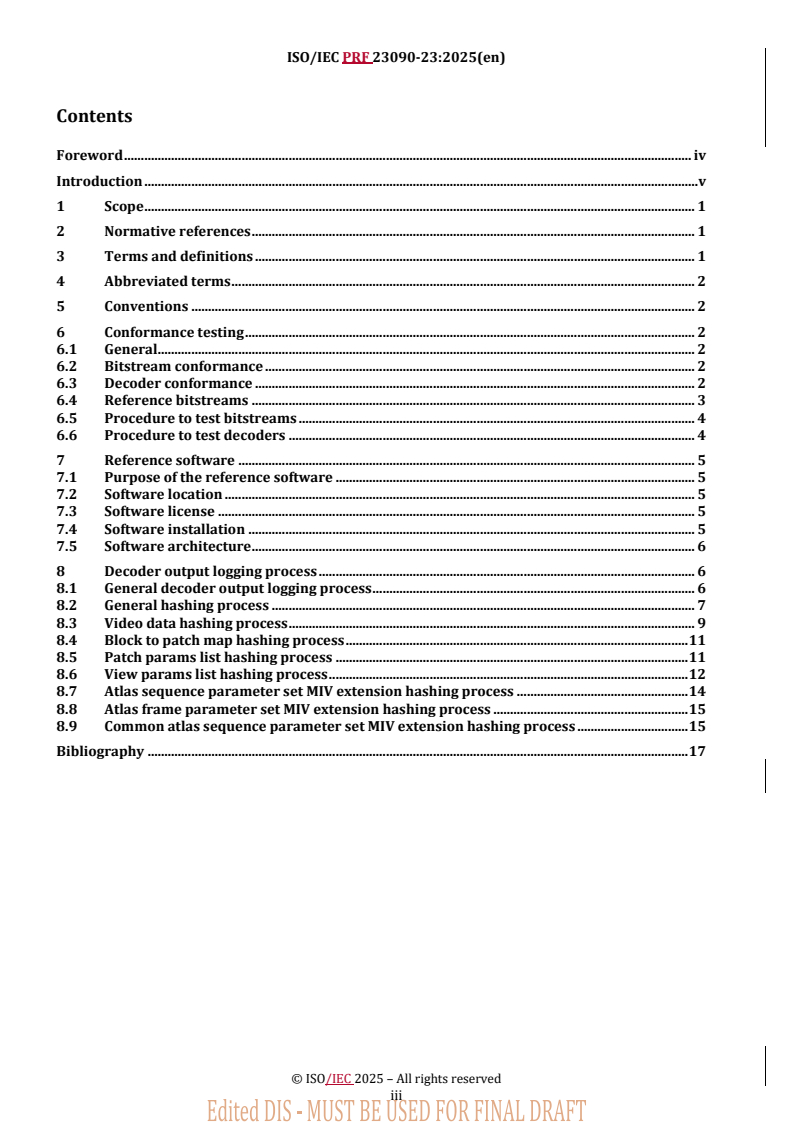 REDLINE ISO/IEC PRF 23090-23 - Information technology — Coded representation of immersive media — Part 23: Conformance and reference software for MPEG immersive video Released:11/27/2025