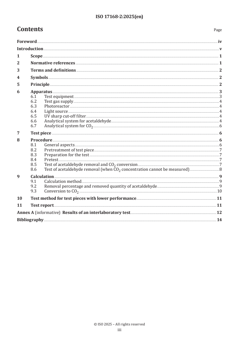 ISO 17168-2:2025 - Fine ceramics (advanced ceramics, advanced technical ceramics) — Test method for air-purification performance of semiconducting photocatalytic materials under indoor lighting environment — Part 2: Removal of acetaldehyde Released:7. 11. 2025