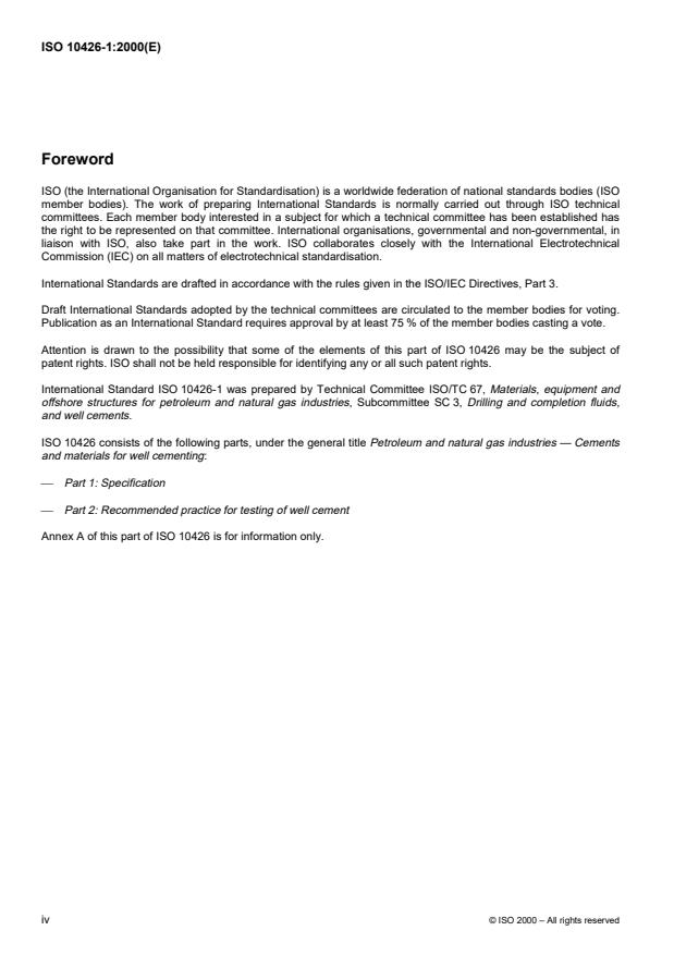 ISO 10426-1:2000 - Petroleum and natural gas industries -- Cements and materials for well cementing