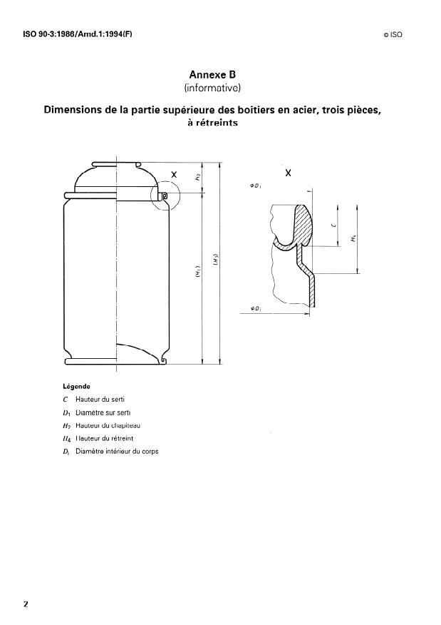 ISO 90-3:1986/Amd 1:1994 - Dimensions de la partie supérieure des boîtiers en acier, trois pieces, a rétreints
