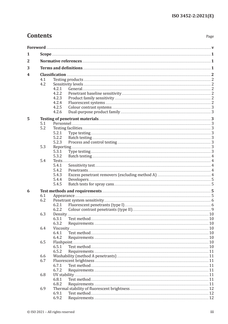 Keywords: ISO 3452-2, penetrant testing, non-destructive testing, NDT, fluorescent penetrants, colour contrast, penetrant materials testing, type testing, batch testing.